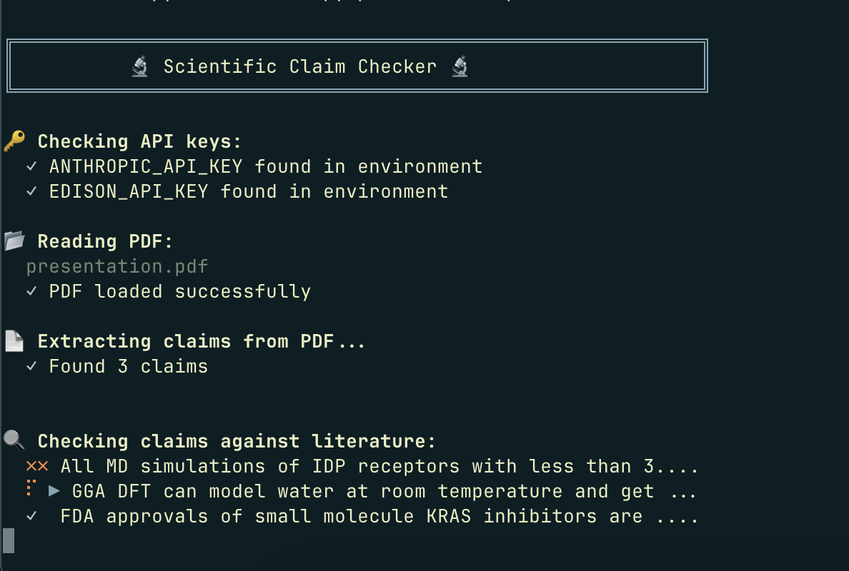Let's just take every claim and ask PaperQA "Has anyone ever contradicted this claim before, and how compelling is that contradicting evidence?" This will give a quick test on if any claims seem outlandish and we can dig more into them. We built something just like this and showed humans usually agree with the analysis in our PaperQA2 paper.5